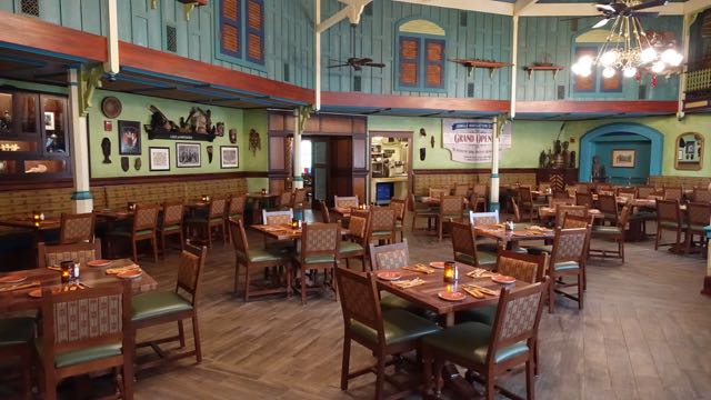 2. Jungle Navigation Co. Ltd. Skipper Canteen- Try tropical cuisine in this restaurant located in Adventureland. Enjoy the flavors of Asia, Africa, and South America. Enjoy dining in 1 of 3 rooms: the crew’s colonial-era Mess Hall, the Jungle Room, and the S.E.A. room. Enjoy chicken, shrimp, and more. Enjoy a dessert call "Quick Sand." Open for lunch and dinner.